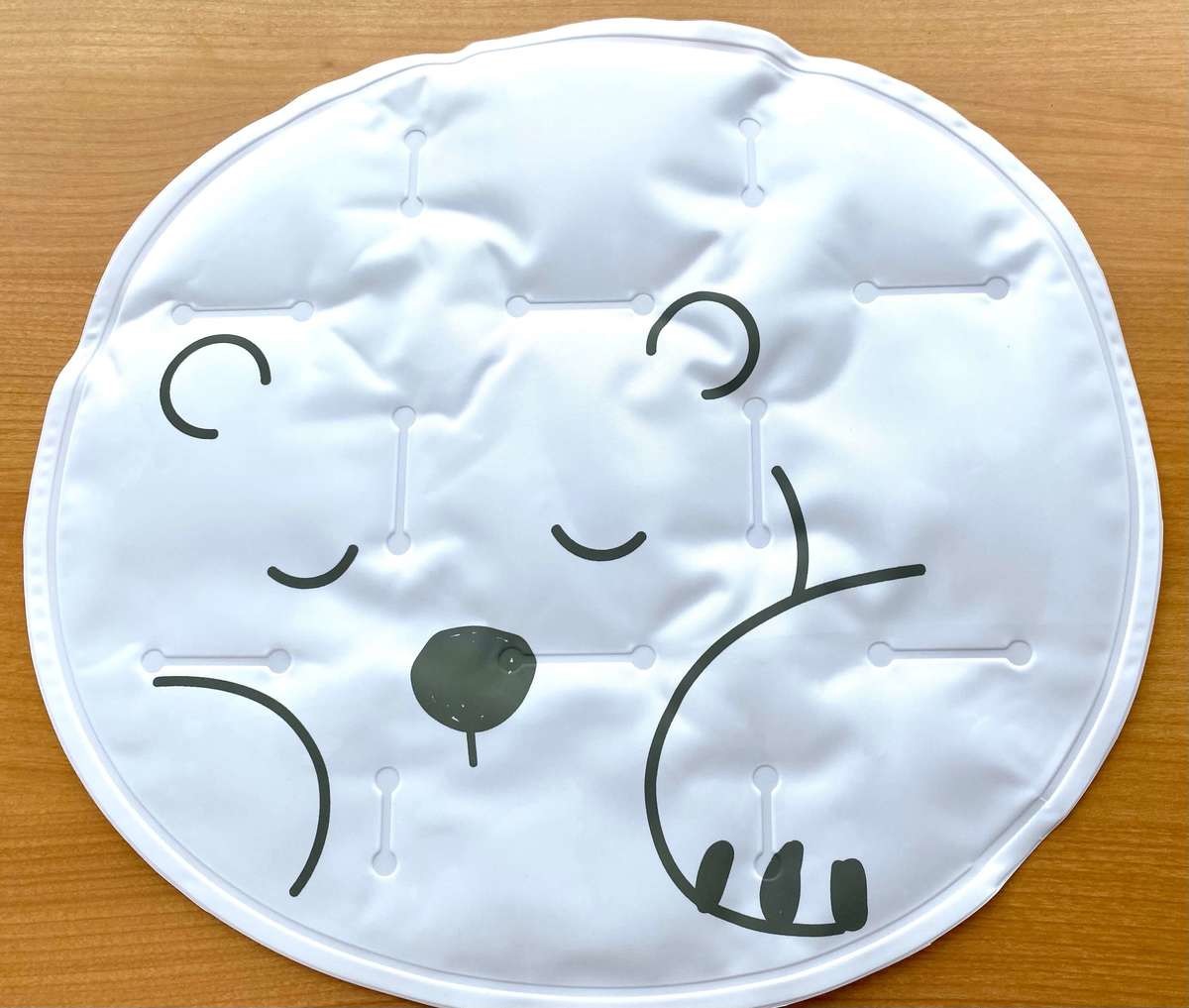 37×33cmの楕円形で、表面にはクマの絵柄がデザインされています。