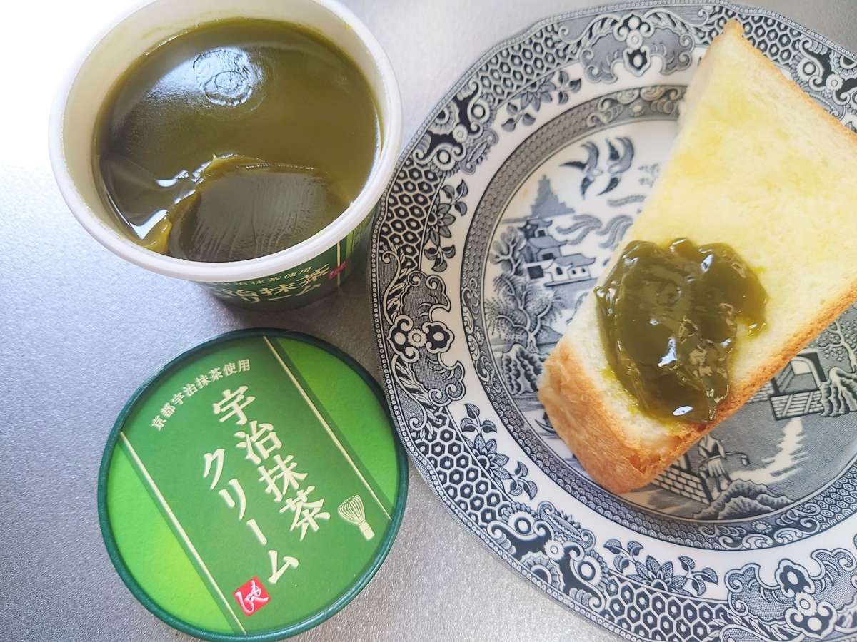 濃厚な抹茶クリームをトーストに塗って食べてみました。