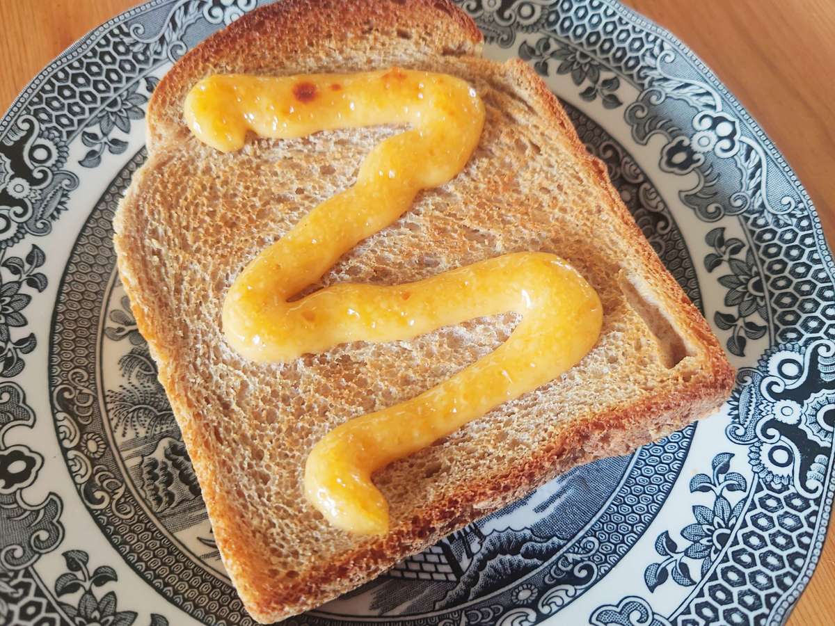 パッケージにはバゲットに塗ってもおいしいとありましたが、広い面積で明太子を楽しみたいという欲望から食パンにだしてトーストして食べました。