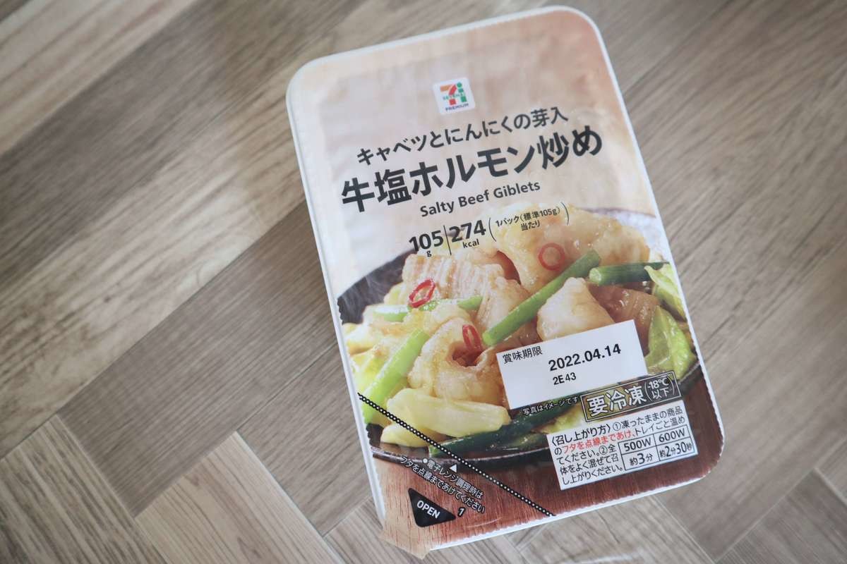 セブンプレミアム“牛塩ホルモン炒め”398円を使います。 このまま食べてももちろん美味しいですが、今回は焼きそばにのせます!