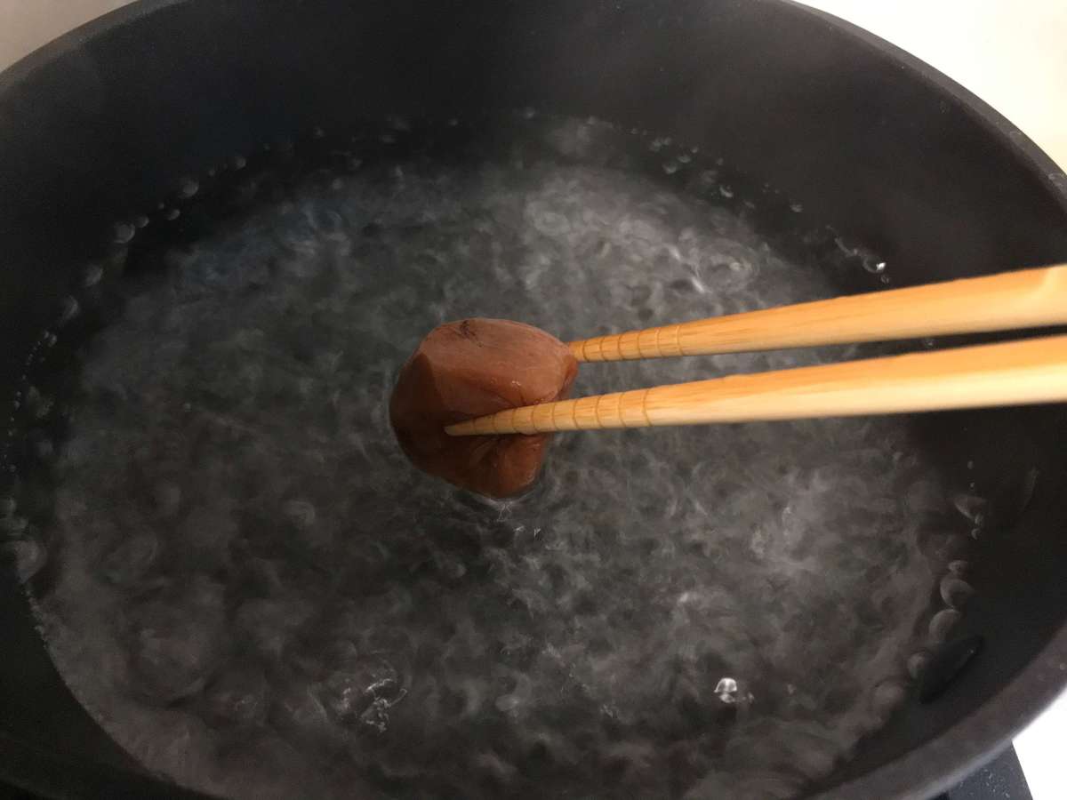 そうめんの作り方①梅干しと一緒に湯がく
