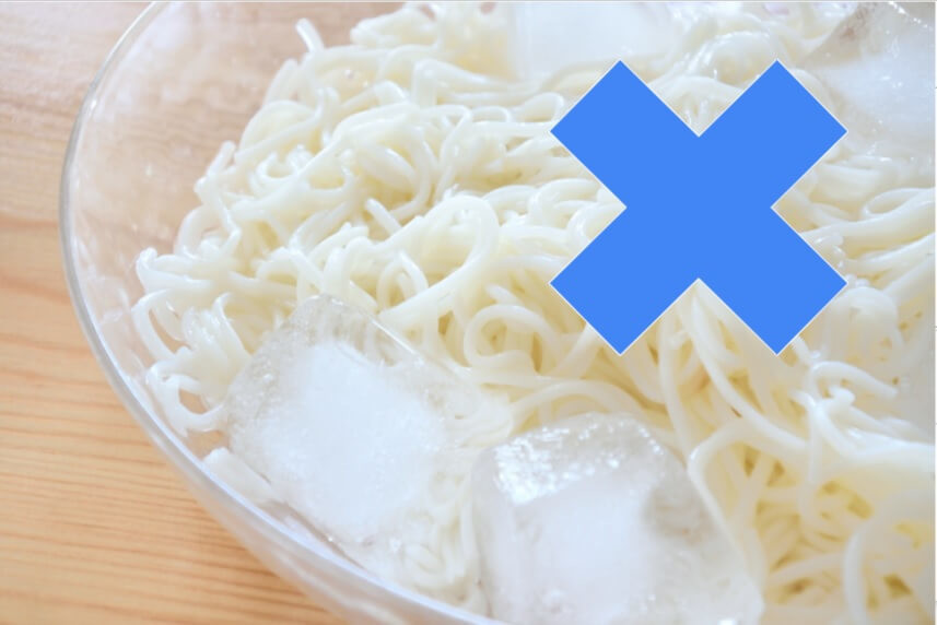 そうめんを盛り付ける時に氷を入れる方もいるとは思いますが、実はNGだそうです。理由は、麺がのびて水のカルキ臭がついてしまうためだからそうです。