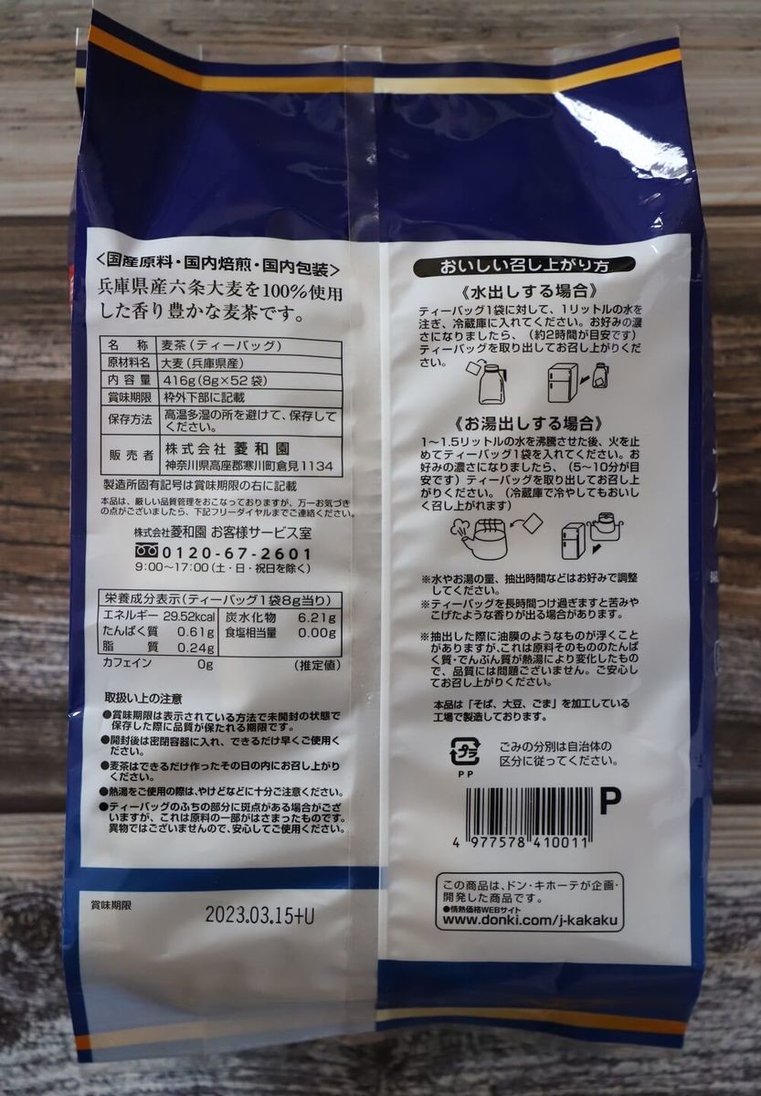 - 右:某メジャーな麦茶(カナダ、オーストラリア、日本産)