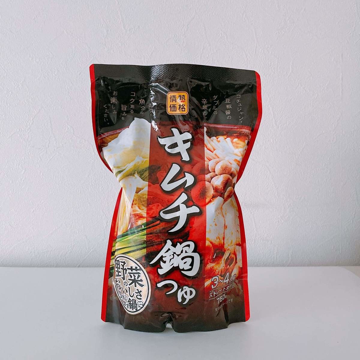 放送では、ミツカンさんの「ミネストローネ鍋スープ」をご紹介していますが、そちらの商品は在庫処分の商品だったので、私は1年中お安く購入できるドンキのプライベートブランド「情熱価格」の「キムチ鍋つゆ」と、そのアレンジレシピをご紹介します。