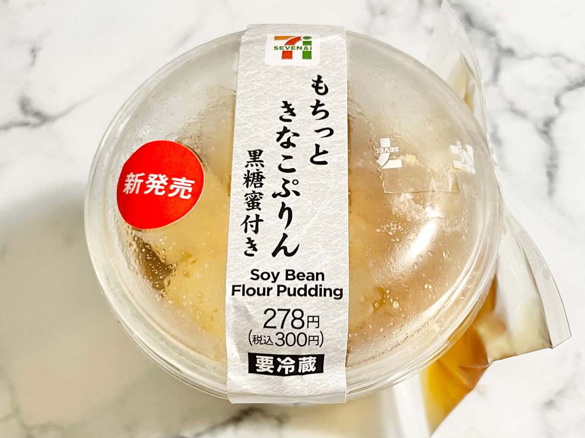 セブンイレブンで購入できる「もちっときなこぷりん 黒糖蜜付き」をご紹介しました。