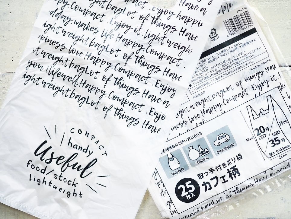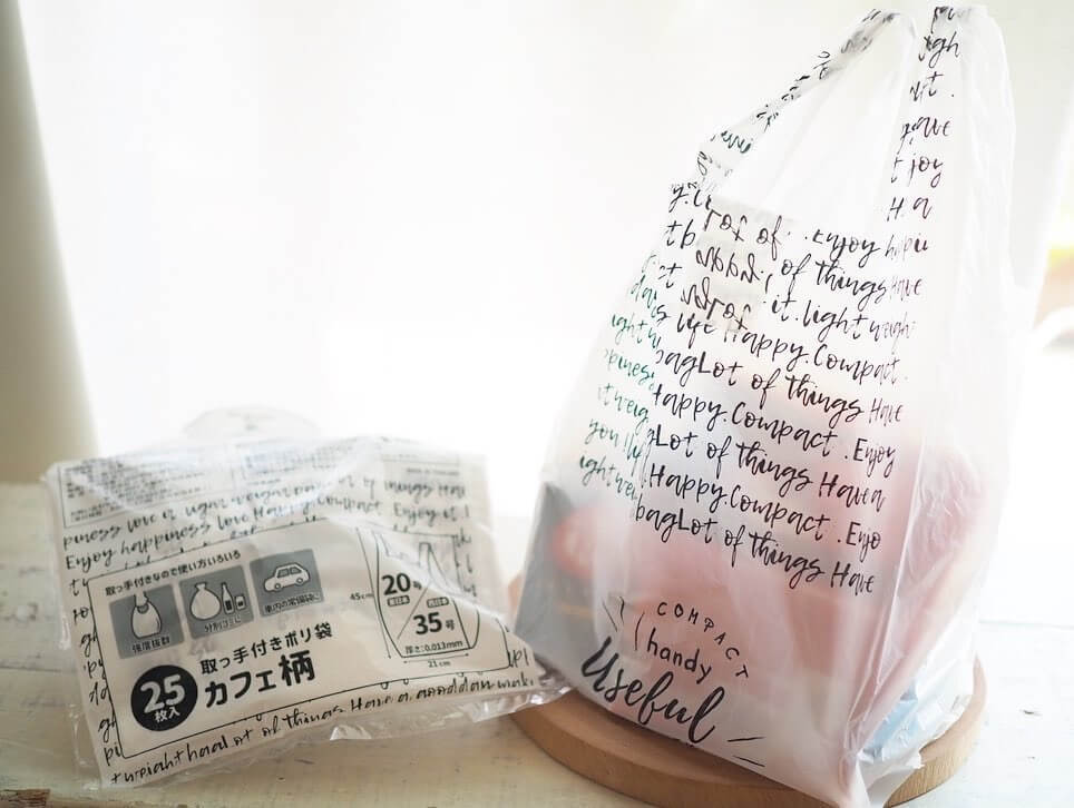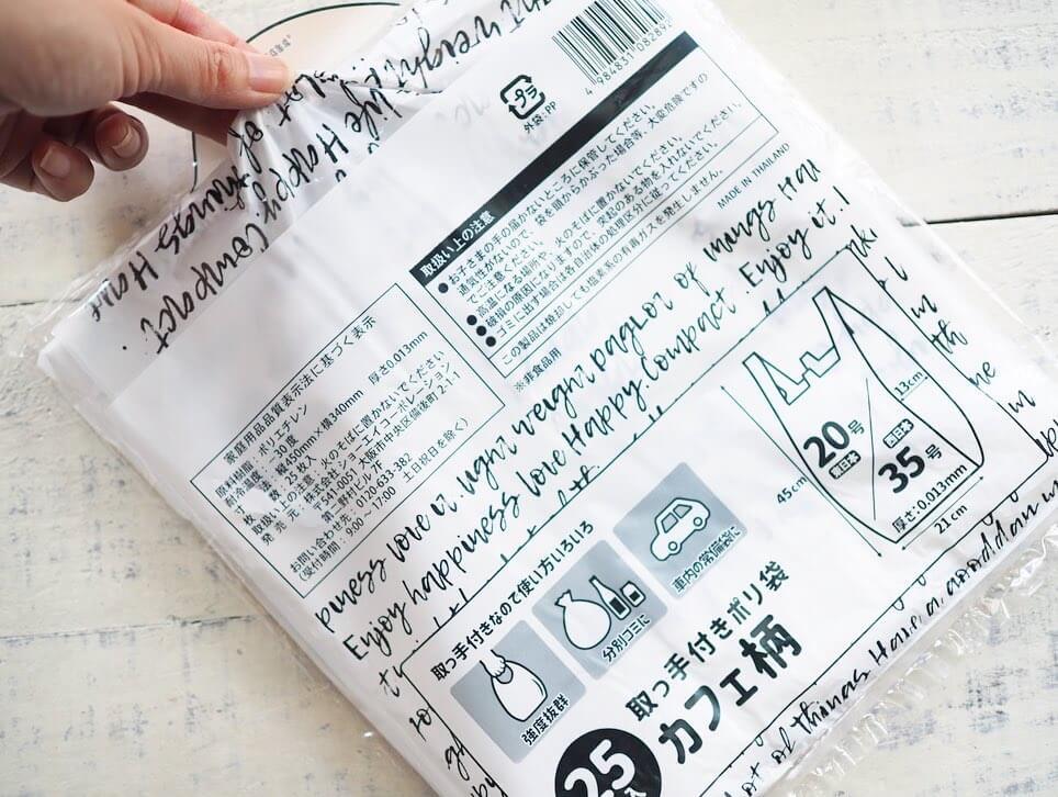 こちらはセリアの「取っ手付きポリ袋 カフェ柄」です。
