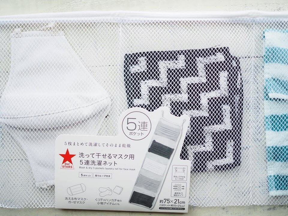 ▲洗って干せるマスク用5連洗濯ネット 110円(税込)