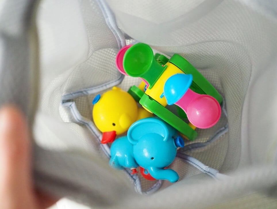 また、洗濯ネット以外にもお風呂で浴室小物やおもちゃを入れて吊り下げ収納にも便利に使えます。