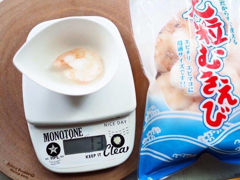 冷凍品なので生えびと違って賞味期限が長く、使いたい時に好きな個数だけ使えるのもとても便利です。