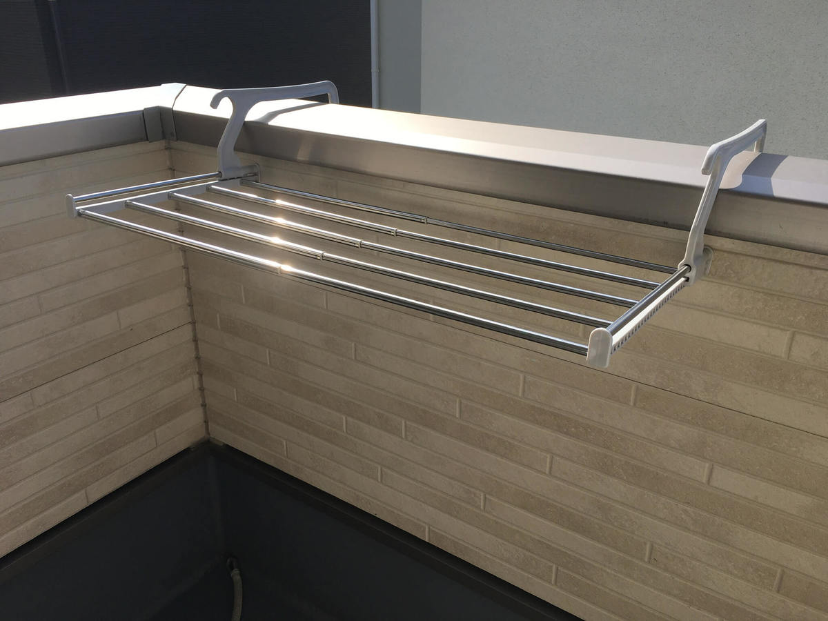 わが家はベランダの柵に掛けて使っていますが、洗濯竿やドアの淵でも使うことができる伸縮自在な優れものです。