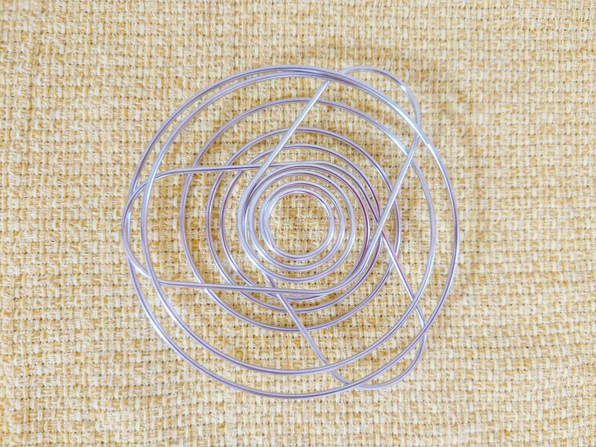 畳むときは、下の台座をぐるぐるの輪にくぐらせるとたためます。