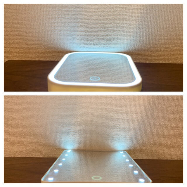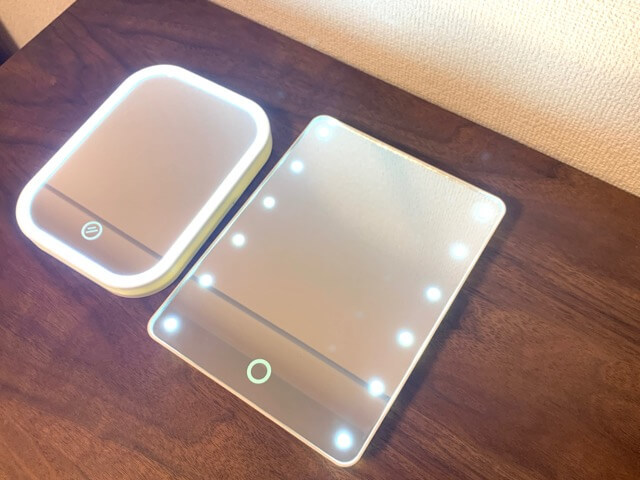 旧型は鏡にライトが埋め込まれていましたが、新型はミラーの周りにぐるっとLEDライトがついています。