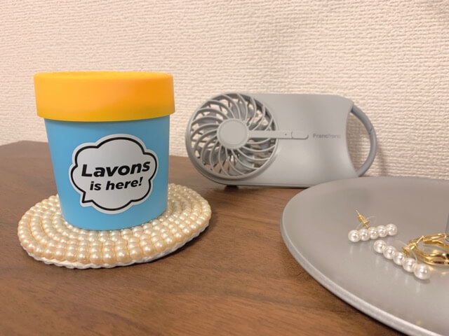 ゲルタイプの消臭&芳香剤。開け口が大きいので、良い香りが存分に楽しめます。またマカロンのようなWカラーも可愛く、簡易卓上ドレッサーも一気に華やかに。