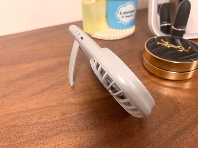 スタンド型にもなるので、デスクに置いて暑い時も快適にメイクできちゃいます。あるとかなり便利ですよ!
