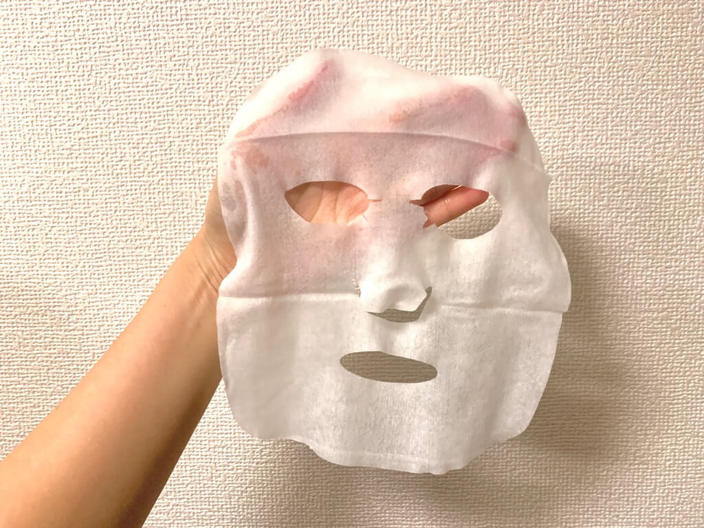 保湿成分をしっかり吸ったマスクシートはストレッチがきいているので、 取り出したらグッとのばして顔にペタリ。