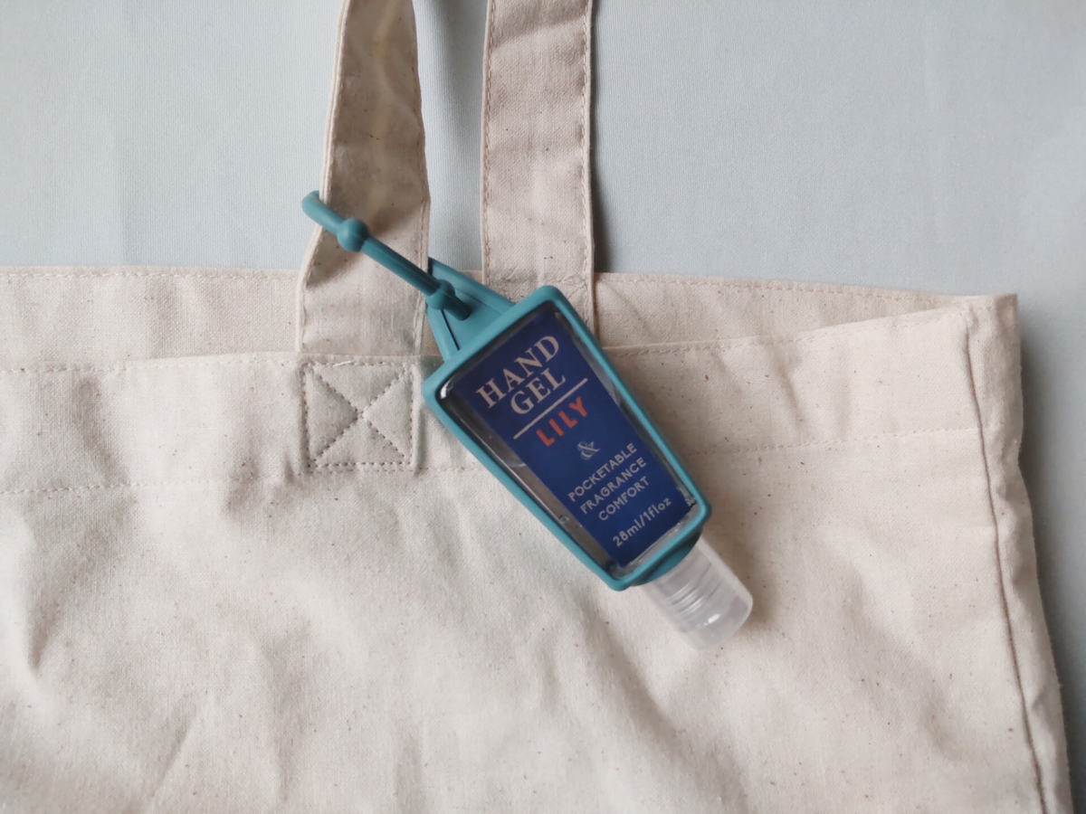 エコバッグに取り付けて、買い物かごやカートに触れるときに使うのもおすすめ。