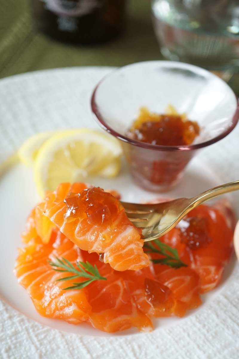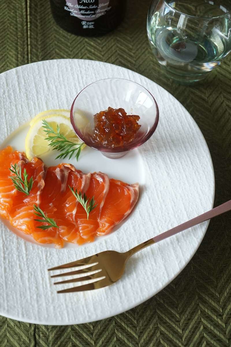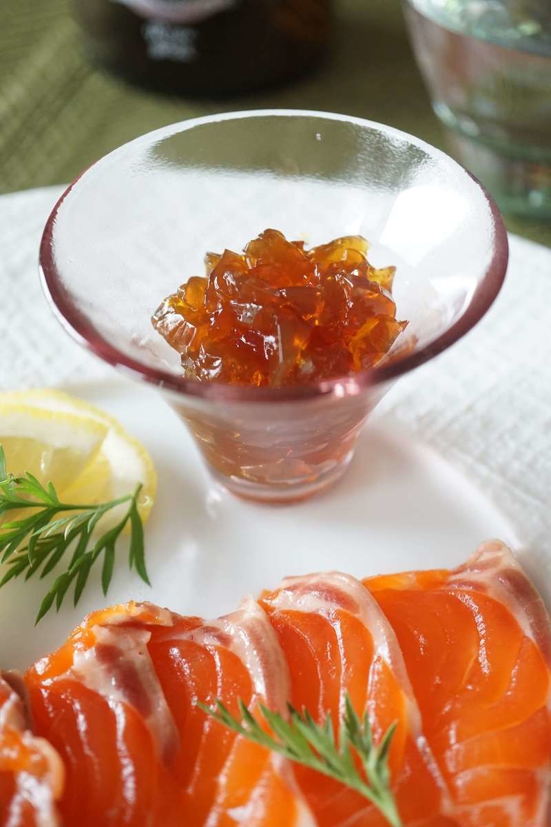 サーモンや白身魚のカルパッチョにぽん酢ジュレをかけるのがおすすめです。