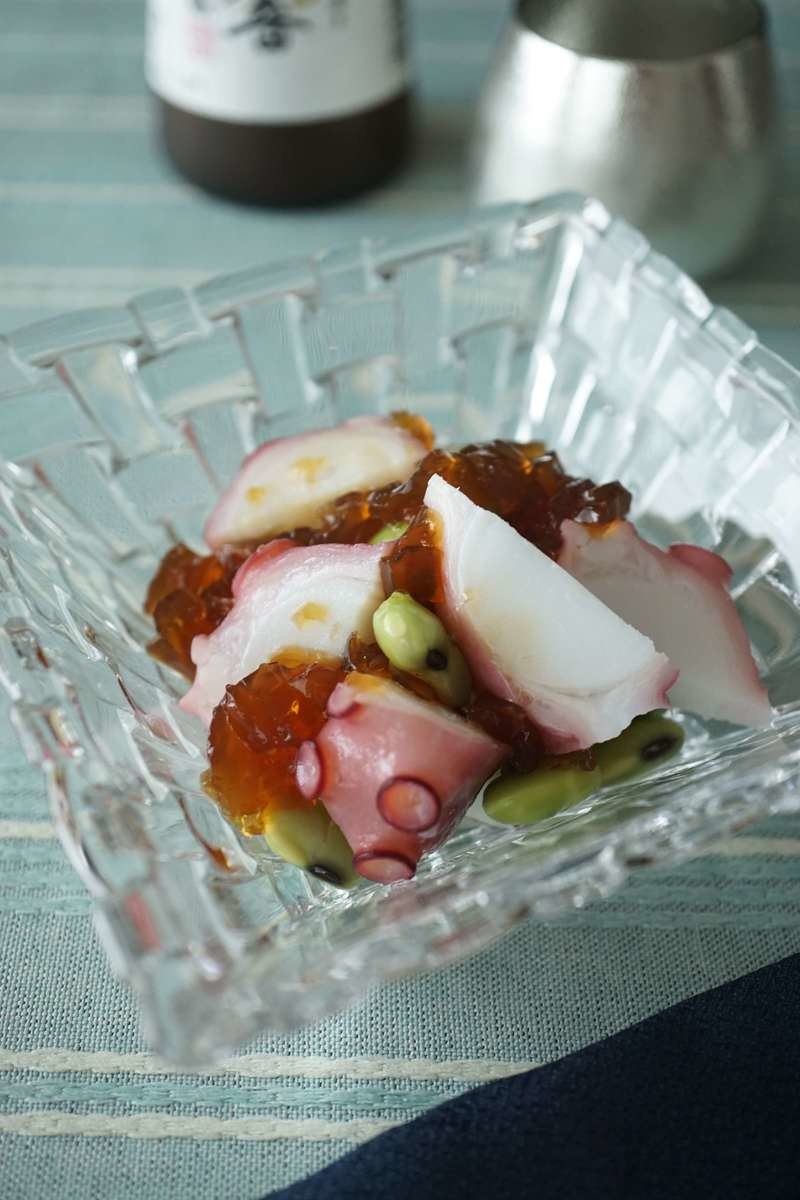 カットしたタコと枝豆を混ぜてぽん酢ジュレをかけるだけ!