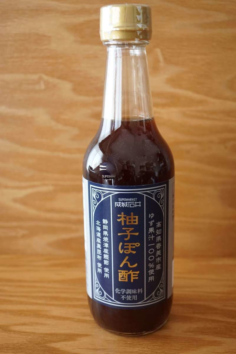 こちらは成城石井のオリジナル商品で日本有数の柚子の産地、高知県香美市産のゆず果汁を100%使用した柚子ぽん酢です。