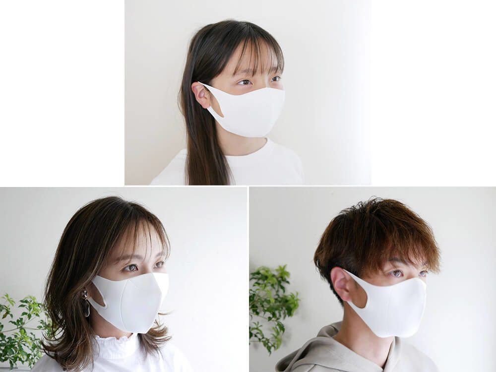 布や不織布のマスクよりも肌にあたる部分がなめらかで毛羽立ちがなく、縫い目がないため、デリケートな肌にとっても嬉しい触感なんです。