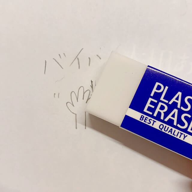 なんで!?って思いますが、なくなったものは仕方ないので、新しい消しゴムを渡します。