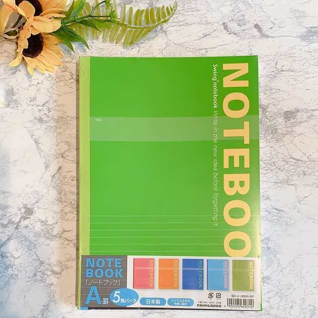 次は、ドンキのスイングノート、5冊セットで195円(税込)です。1冊びっくりの40円!
