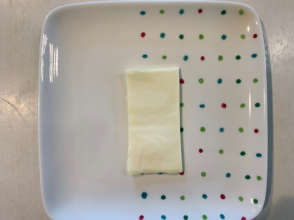 まずはじめに、スライスチーズの半面にマヨネーズを塗り、半分に折りたたみます。マヨネーズを塗ることでスライスチーズに厚みが出て、ゆっくりと加熱されてチーズ本来の美味しさを引き出すことができるそうです。