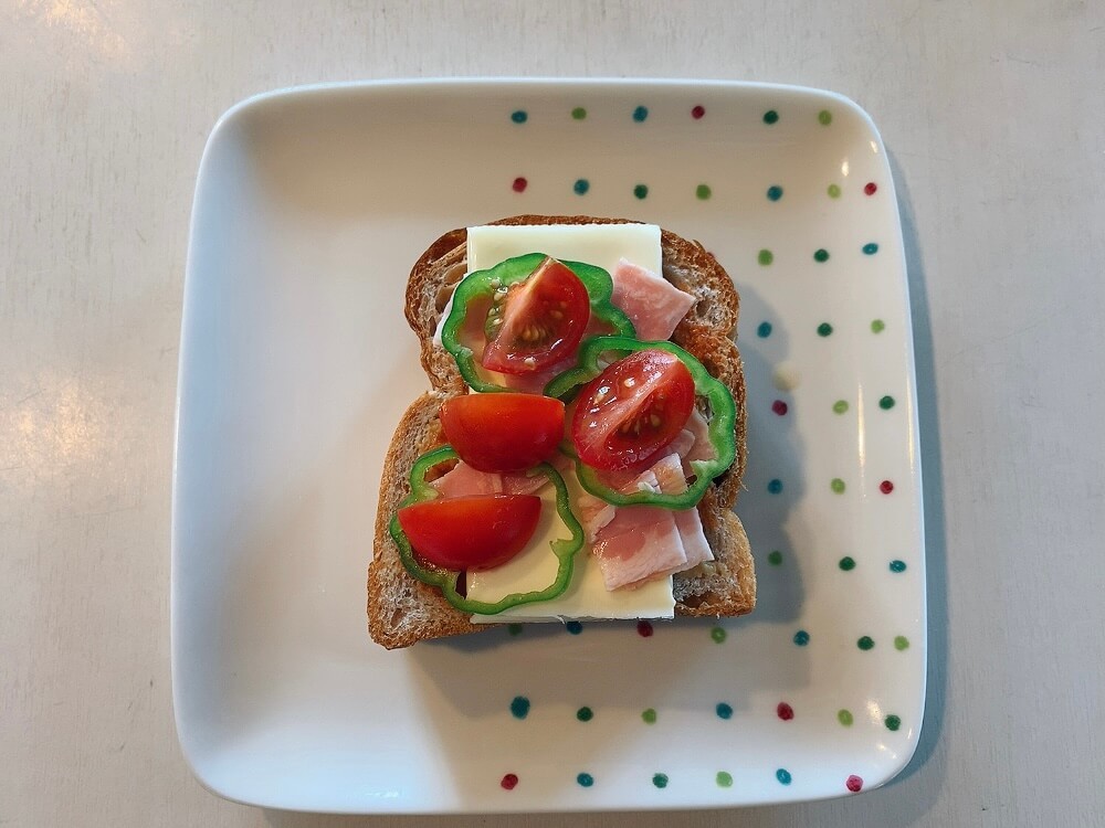 ピザの具材は今回、プチトマト・ベーコン・ピーマンを使いました。