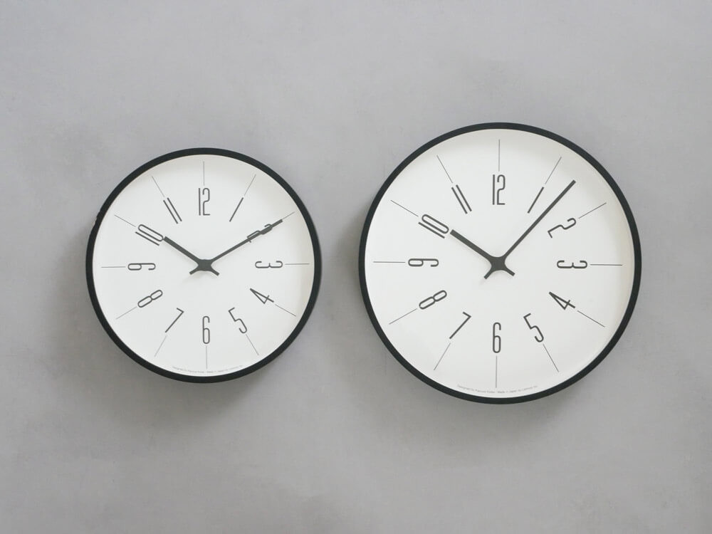 シンプルでミニマルなデザインは、もちろんどんなインテリアにも。 すっきりとした佇まいでありながら、どこからでも見やすいようなメリハリの効いた力強さを残した時計です。