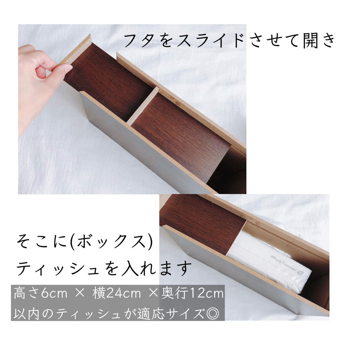 フタをスライドさせて開き、そこへティッシュを入れます。
