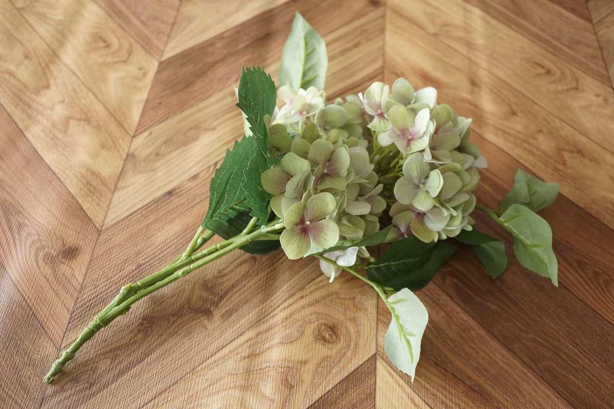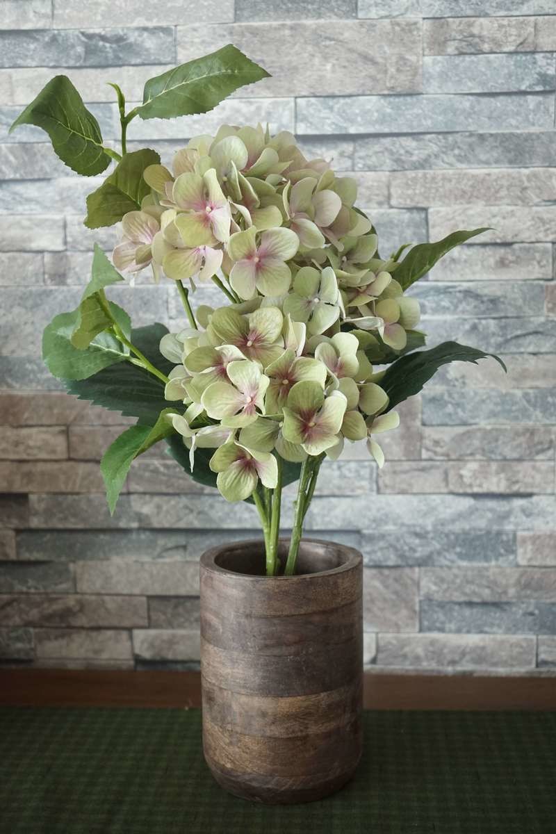 こちらは黒い鉢がついている状態で販売されていますが、花瓶で飾りたかったので鉢から外し、アジサイのみにしました。