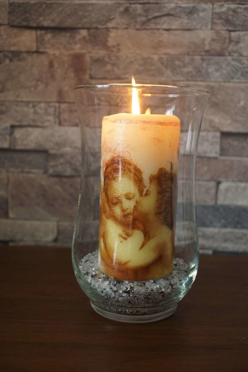 粉砕ガラスの上にキャンドルをのせるとキャンドルをしっかり固定することもできます。