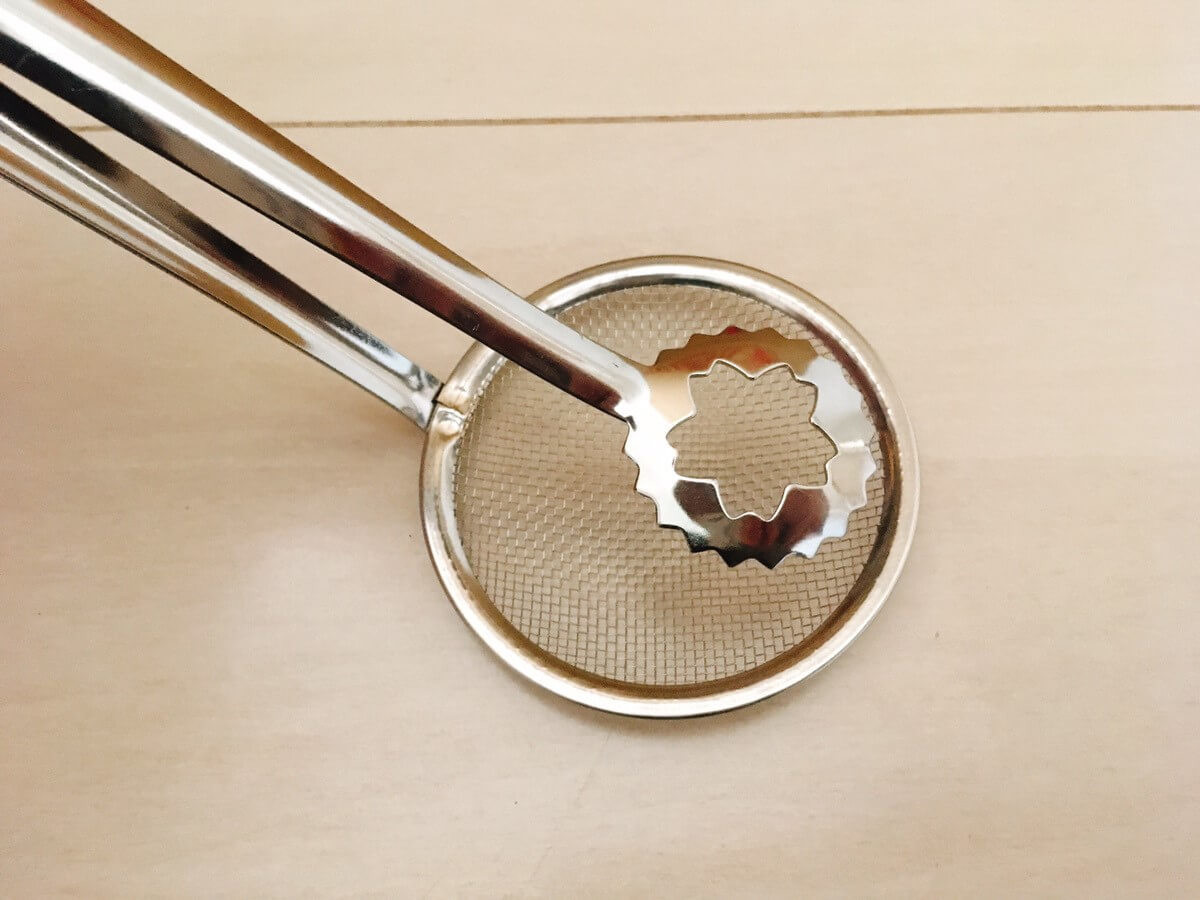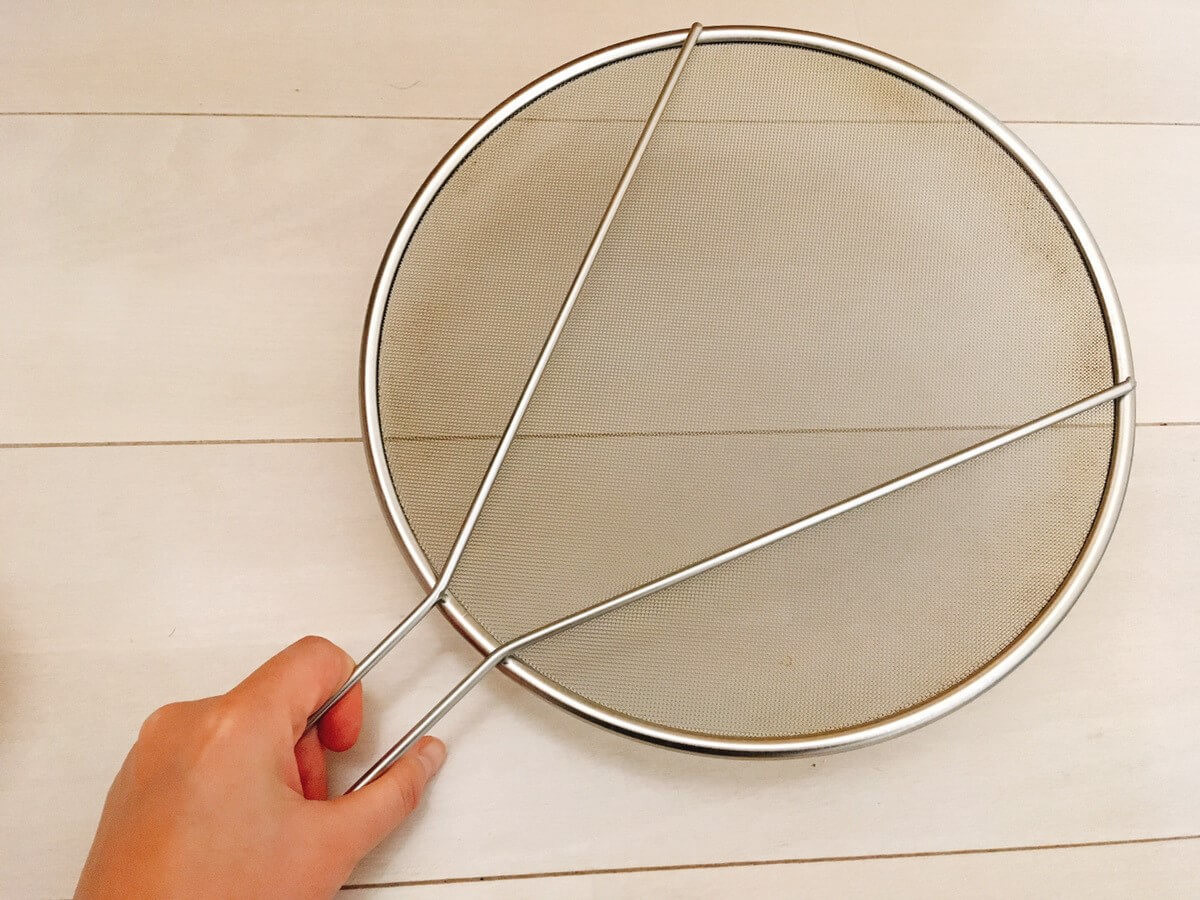 油はね防止ネットを使うときは、手で少し浮かせたり、なべつかみで持ったりするなど、工夫が必要です。