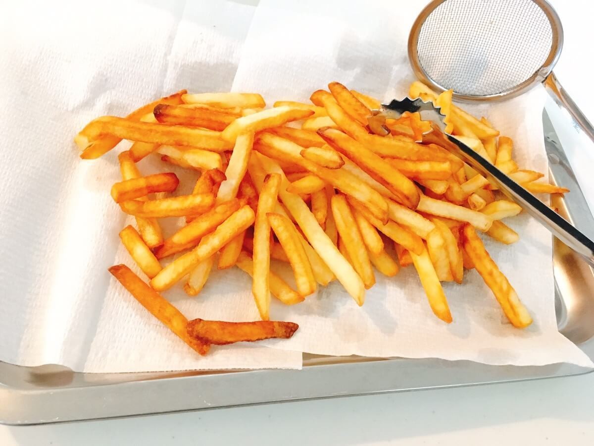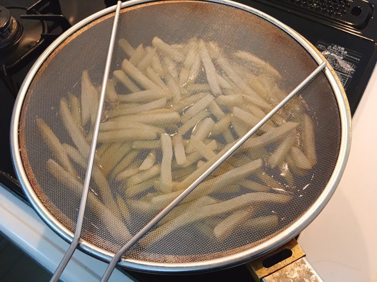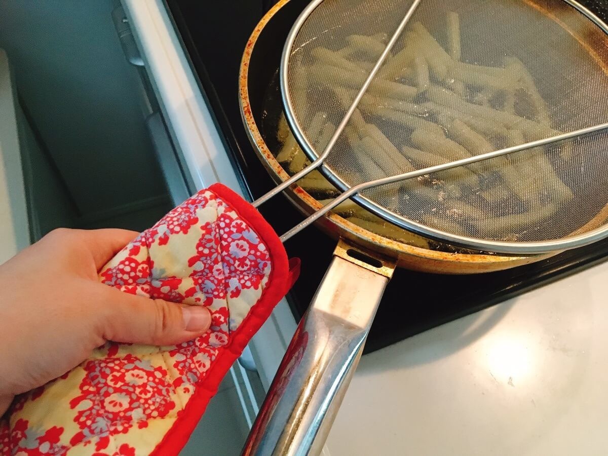 油に冷凍ポテトを入れた瞬間の、パチパチ!という音が恐怖です(笑)