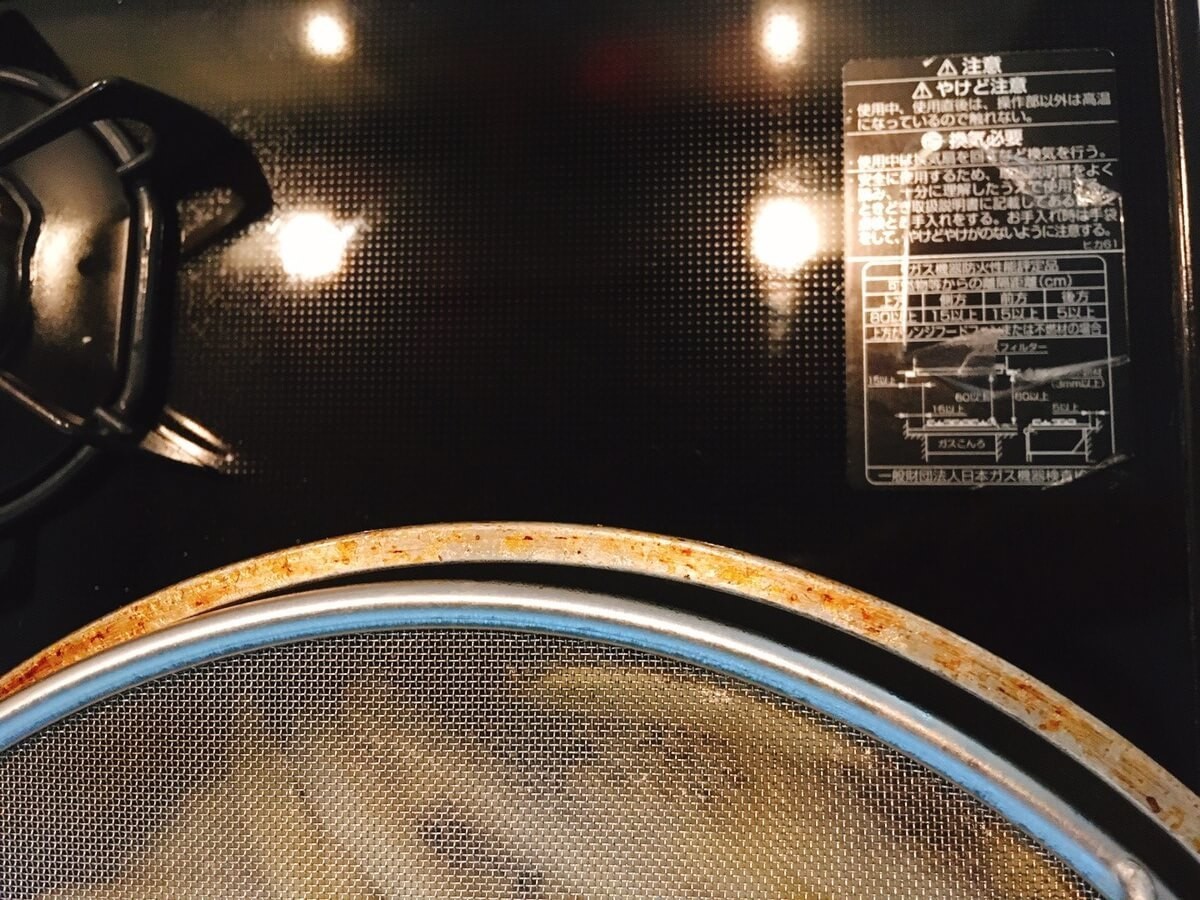 揚げカスはオイルポットの網にひっかかるので、大きめの揚げカスだけ網ですくえばOK♪