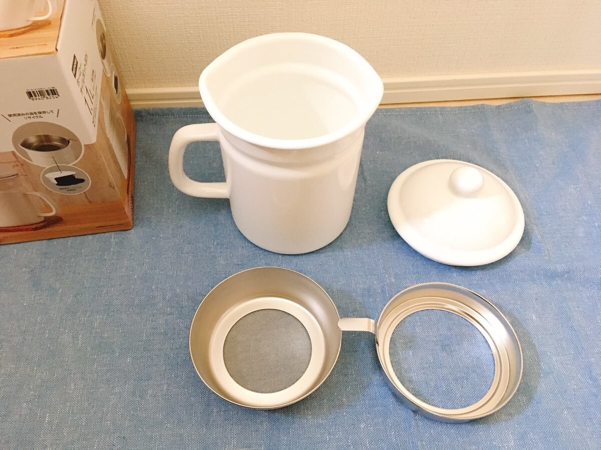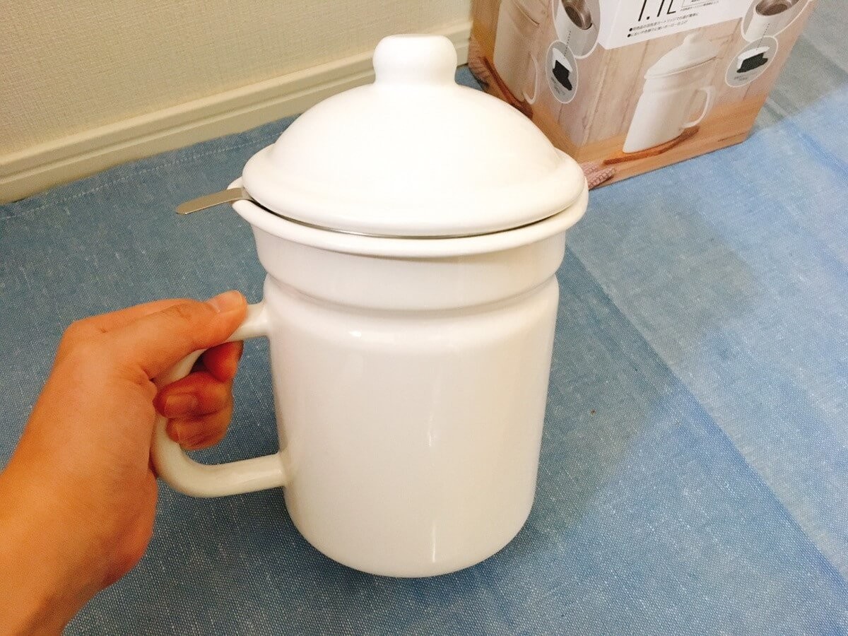 ホーロー製の白くてかわいいオイルポットなので、ちょっとしたインテリアに見えなくもない♪