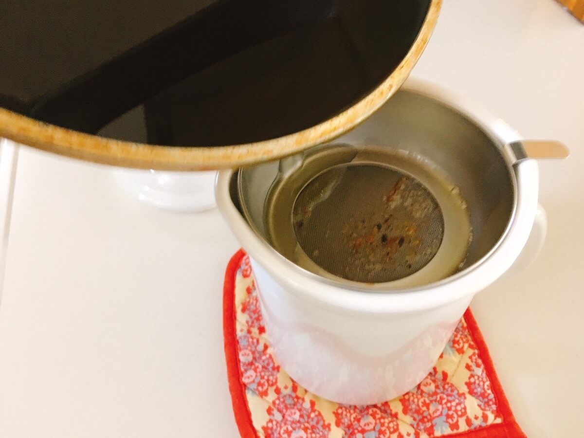 油を濾すときは、すこ~しずつ溢れないよう注意が必要です。