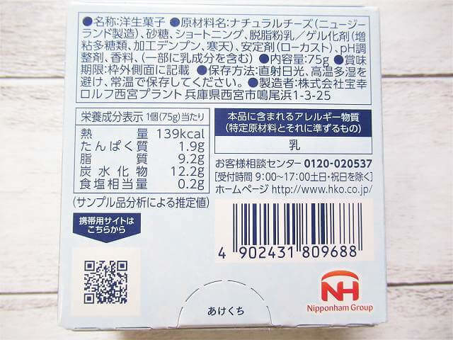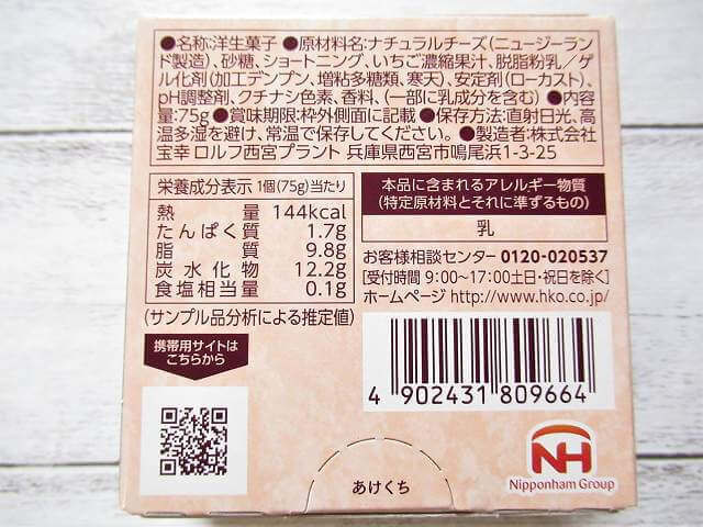ロルフのレアチーズケーキストロベリーは、先ほどご紹介したプレーンよりも若干カロりーは高め……。