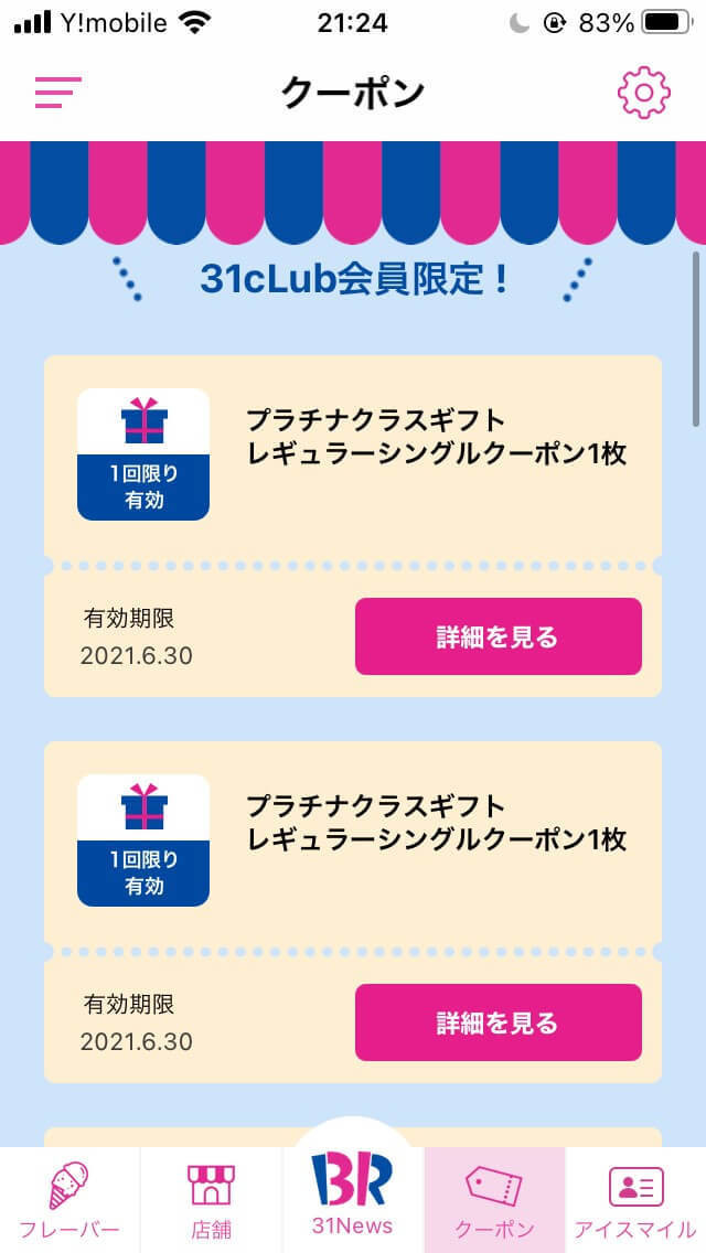 公式アプリには、お得なクーポンが配信されているほか、「アイスマイル」というポイントサービスもあります♪