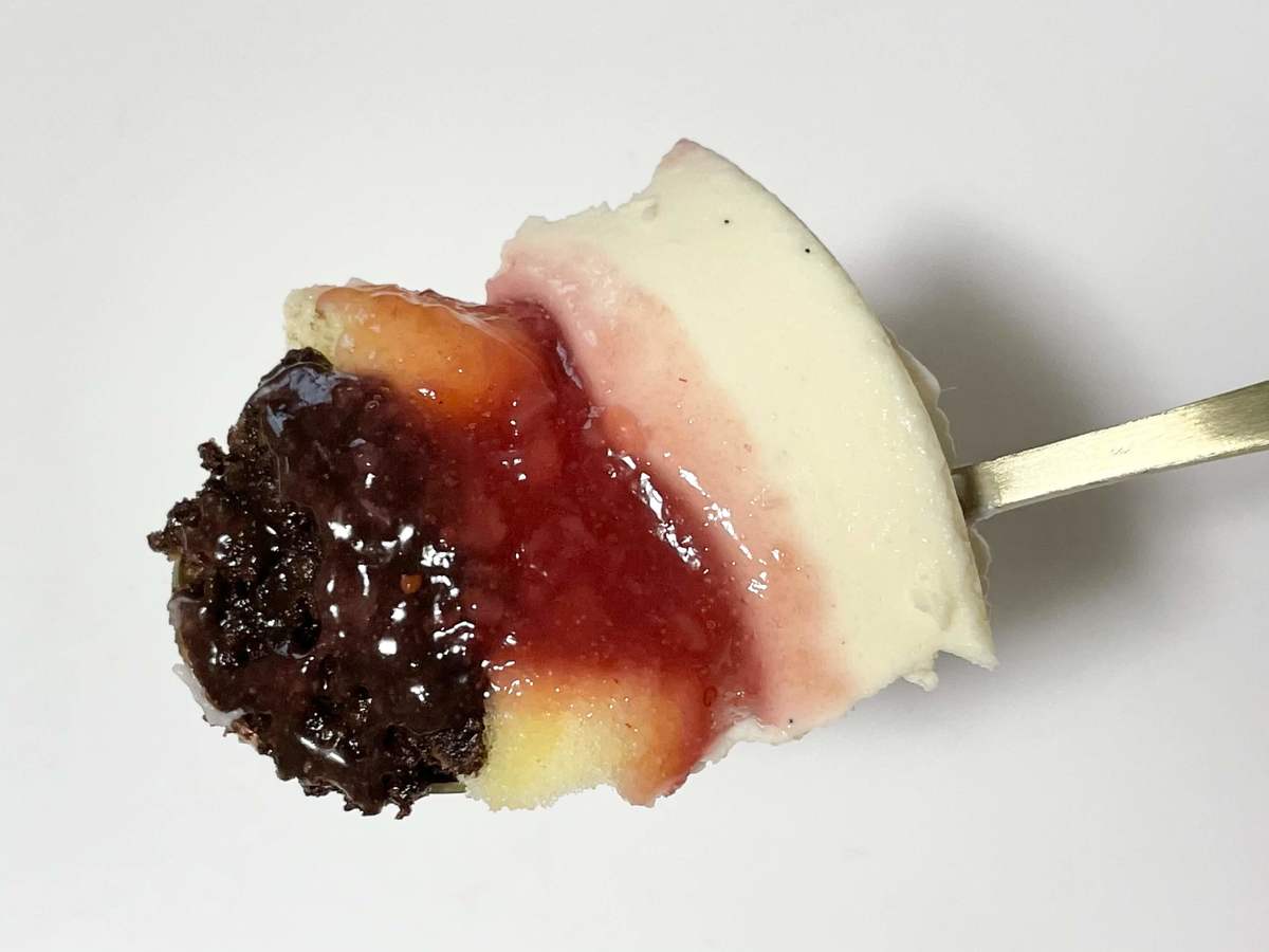 横から見ると、きれいな層が! スポンジケーキがゴロっと入っているのが分かります。