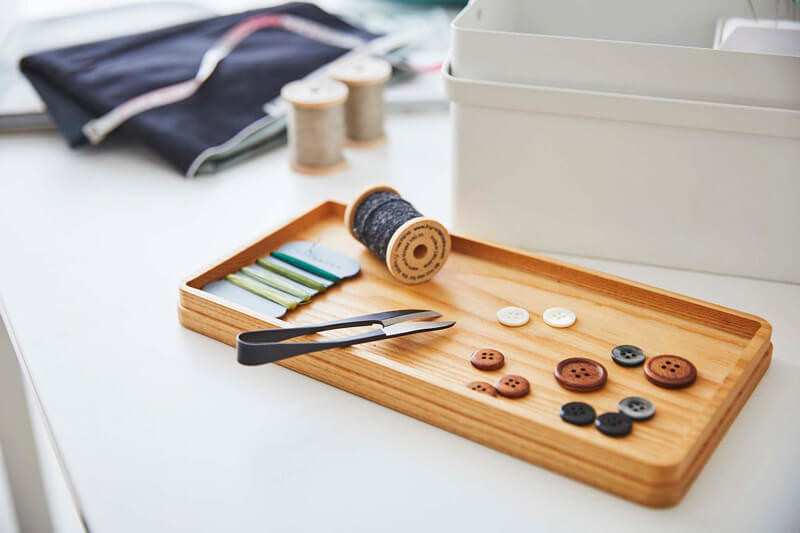 ボタン付け、子ども用品のお裁縫、ほつれ直しなどの針仕事が、ちょっとしたクリエイティブな気分転換になるようなお裁縫箱。雑貨ライクな見た目で、出し置きが画になります。