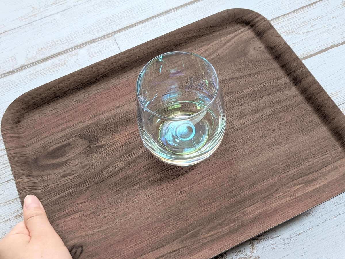 つい先日、スリーコインズで購入したオーロラグラスをトレイで運ぶ際、ヒヤッとすることがありました。 トレイが滑りやすい素材だったため、危うくグラスを落としそうになってしまったんです。