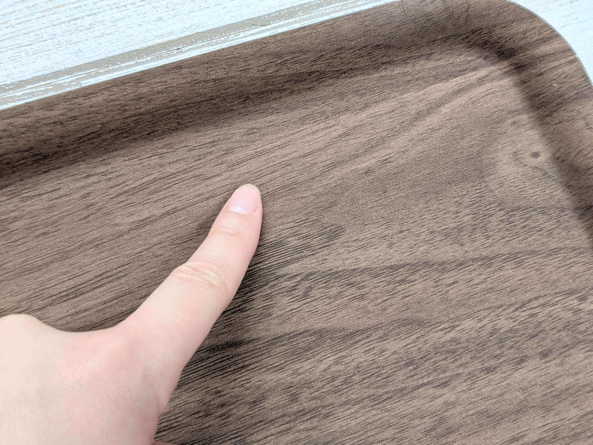 ぱっと見は普通のトレイに見えますが、触ってみると滑りにくい理由がわかります! 滑り止め加工が施されており、シリコンのような触り心地です。