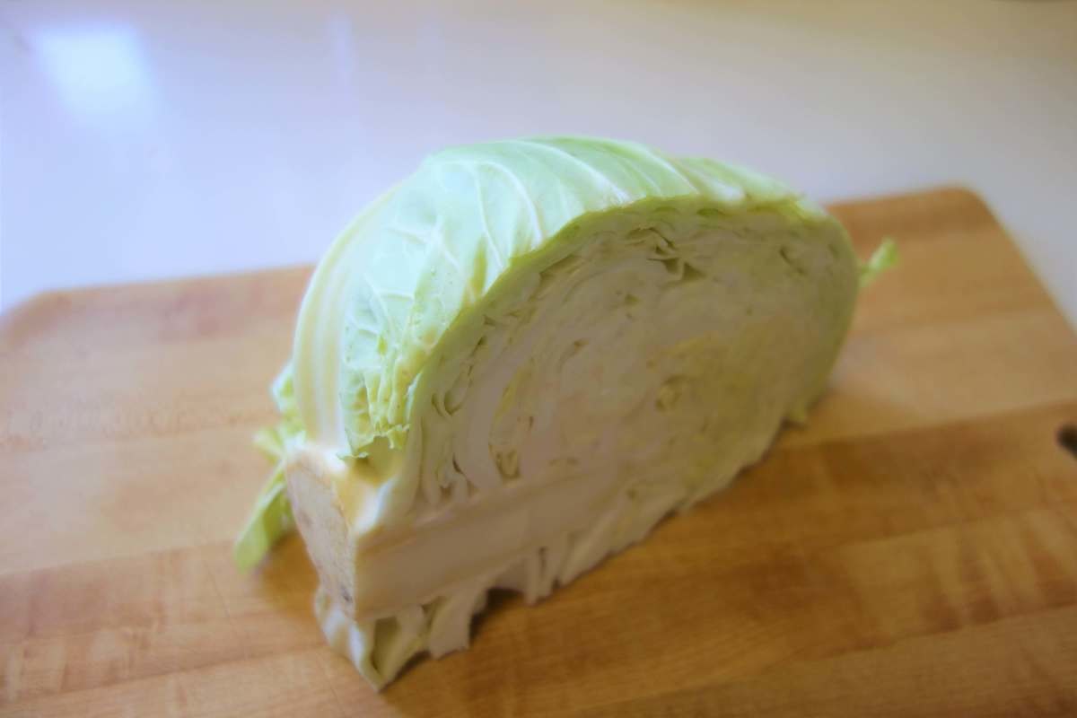 キャベツレシピ①キャベツを1/4にカットする