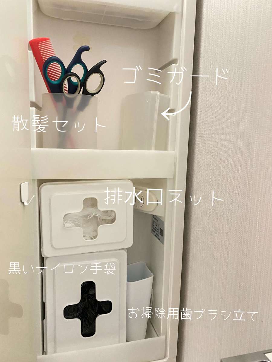 洗面所に置いている黒は、お風呂・キッチンの排水口掃除用として。