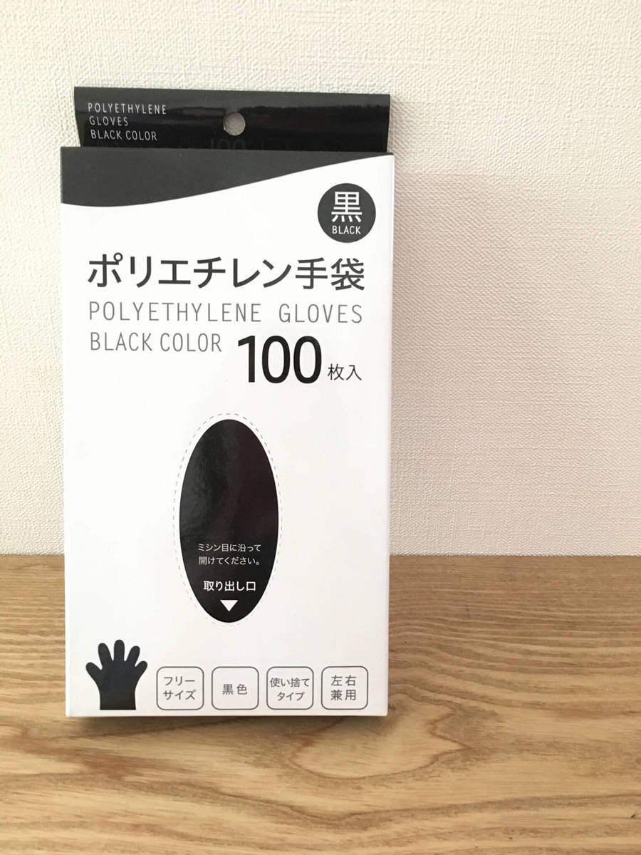 - ポリエチレン手袋 黒・透明 セリア各110円(税込)