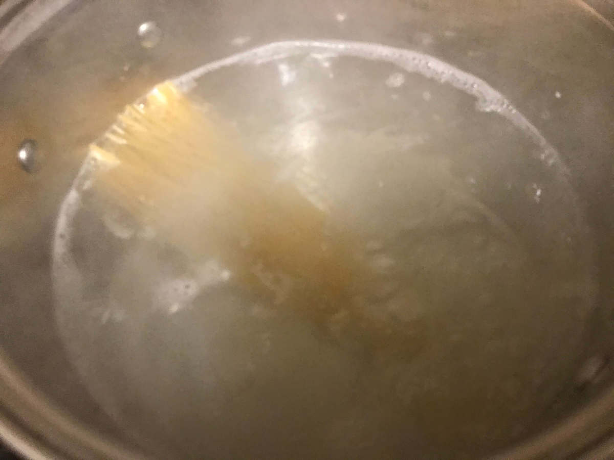 太麺のパスタは12分間、カッペリーニパスタは4分間茹でました。