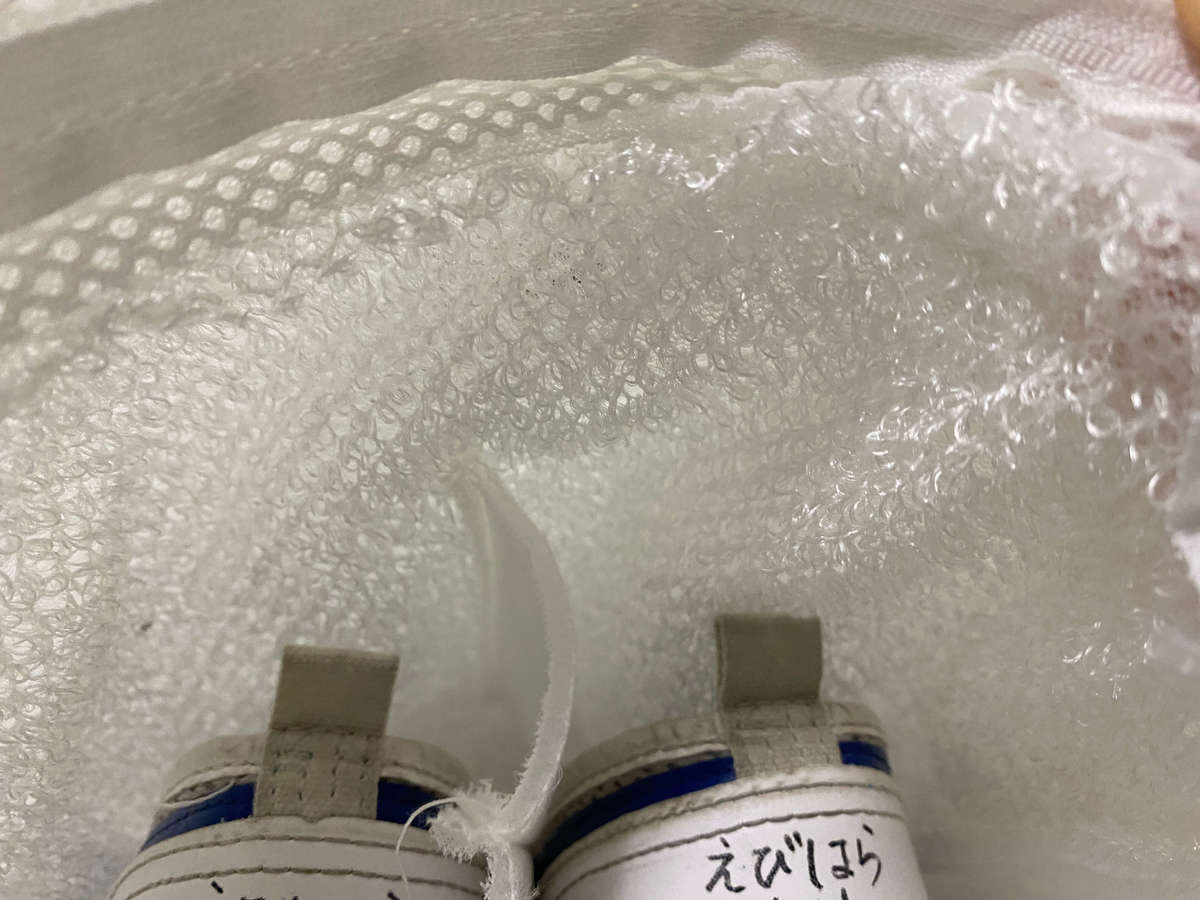 ネットの中に上履きを入れるだけでOK!あとはそのまま洗濯機にいれて洗います。汚れが酷い場合を除き、わざわざブラシで擦る必要もありません。