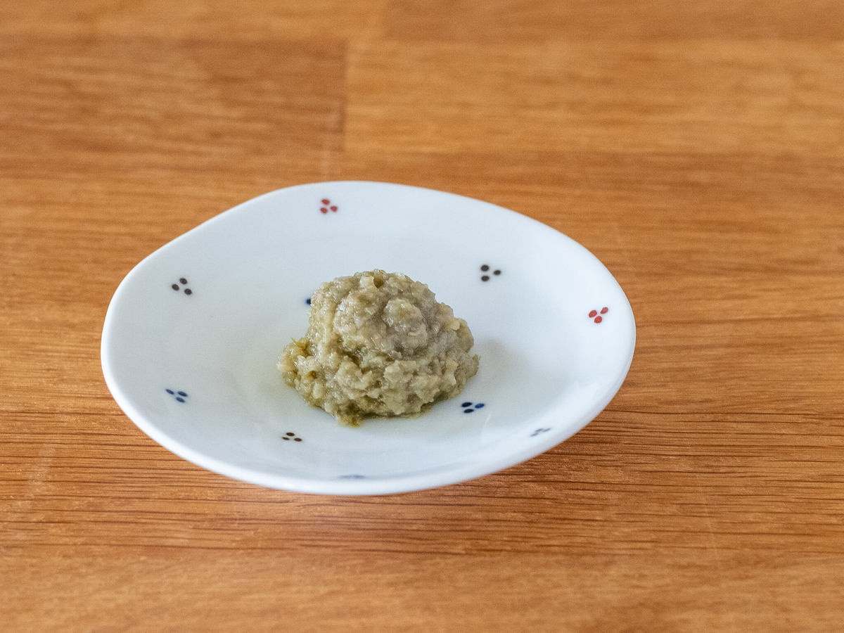 業務スーパーの「柚子こしょう」を小皿に取り、味見をしてみました。
