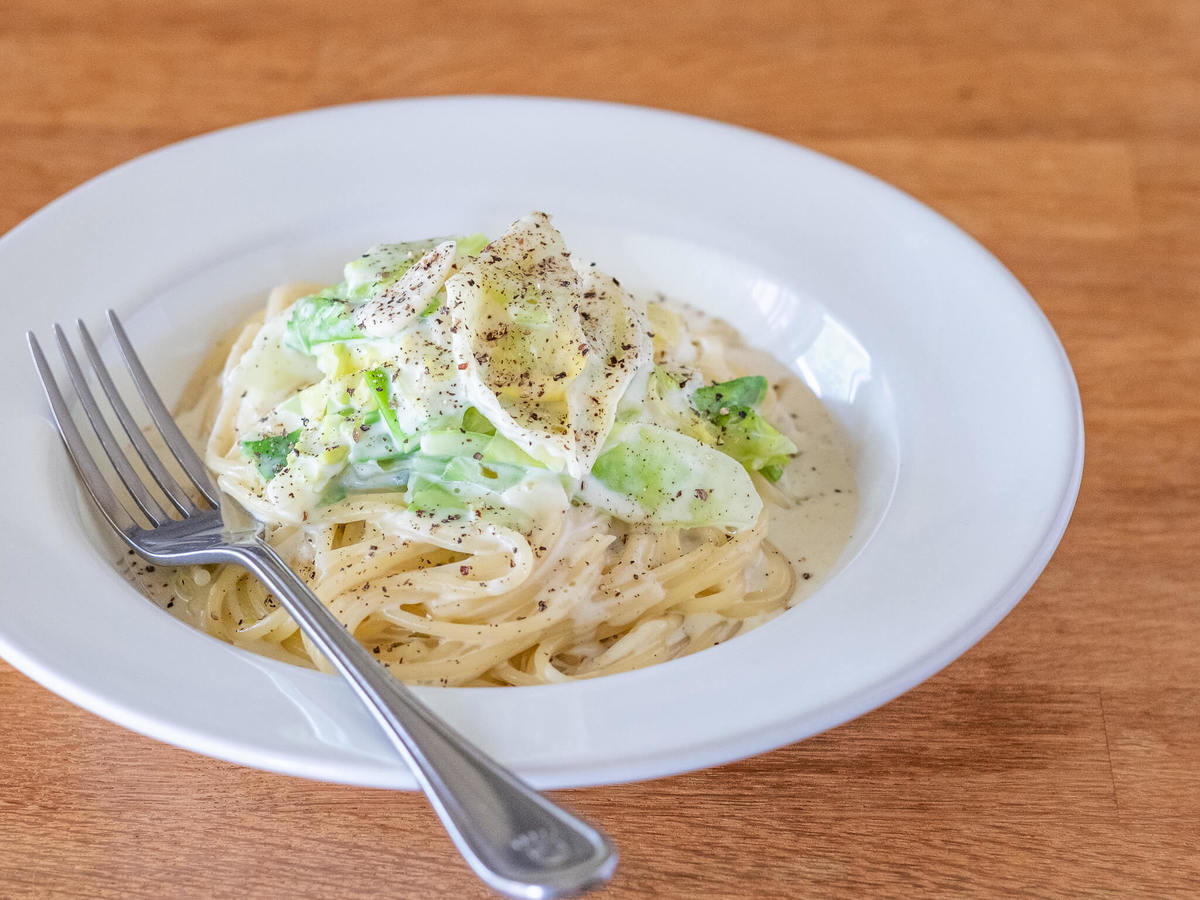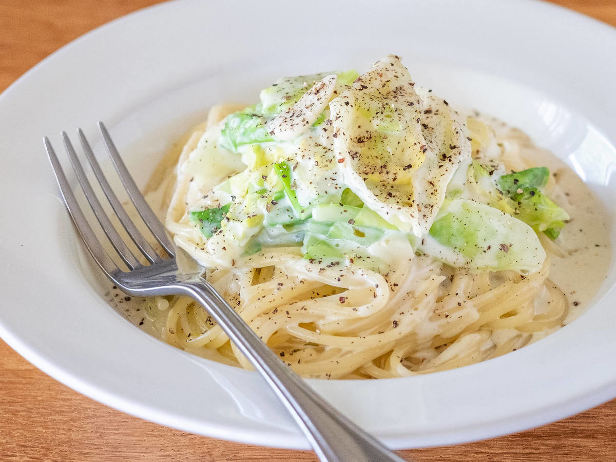 キャベツと一緒に「柚子こしょうクリームパスタ」に